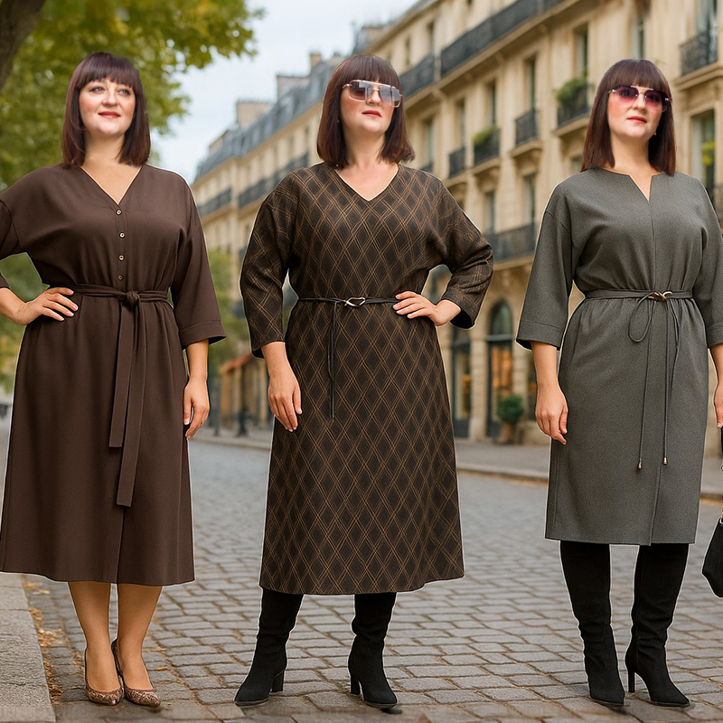 Теплі сукні Alenka Plus з турецького трикотажу жакард і Лакости — це поєднання комфорту, затишку і жіночності. Незалежно від кольору чи варіанту фасону, вони стануть вашим надійним союзником у холодну пору.